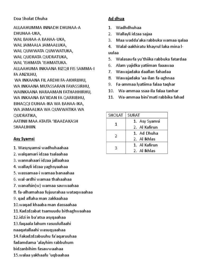 Terdapat sebuah hadis yang menganjurkan untuk membaca surat as syams pada rakaat pertama dan membaca surat ad dhuha pada rakaat kedua. Shalatlah dua rakaat dhuha dengan membaca dua surat dhuha yaitu surat was syamsi wadhuhaa haa dan surat adh dhuha hr. Surat asy syams dan surat adh dhuha. Sebagaimana berdalih pada suatu keterangan, "shalatlah dua rakaat dhuha dengan membaca dua surat dhuha, yaitu surat was syamsi wadhuhaa haa dan surat adh . Situs mudah dibaca, cepat dibuka & hemat kuota.